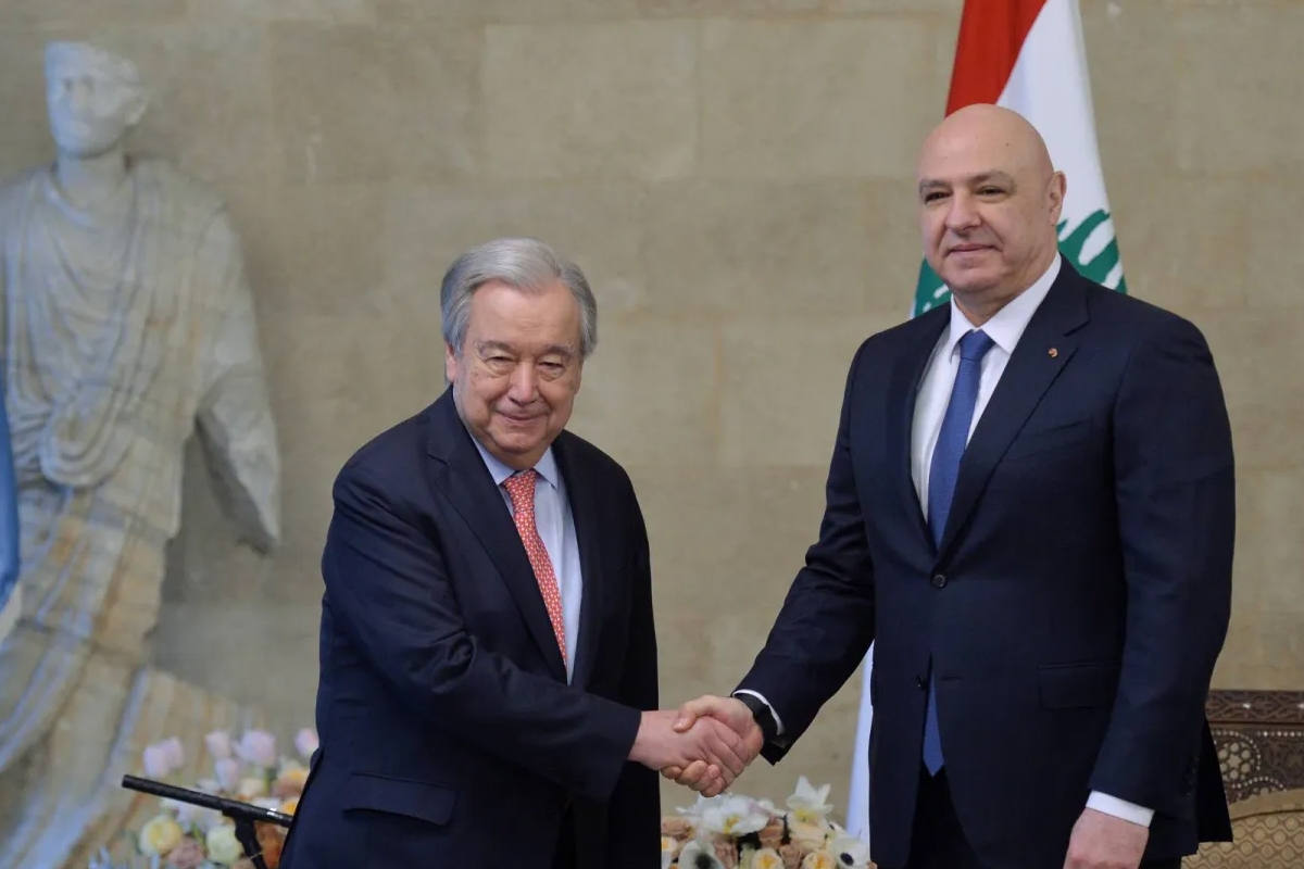 ونقلت الوكالة الوطنية للإعلام عن غوتيريش قوله، بعد اجتماعه اليوم برئيس الجمهورية جوزيف عون «أتيحت لي في هذا الاجتماع مع رئيس الجمهورية، الفرصة للتعبير عن تضامننا مع شعب لبنان الذي عانى كثيراً، كما أعربت عن دعمنا الكامل للرئيس وللحكومة المستقبلية، مع علمنا أنه سيكون من الممكن الآن تعزيز مؤسسات الدولة اللبنانية وتهيئة الظروف اللازمة لتمكين الدولة اللبنانية من حماية مواطنيها بشكل كامل».