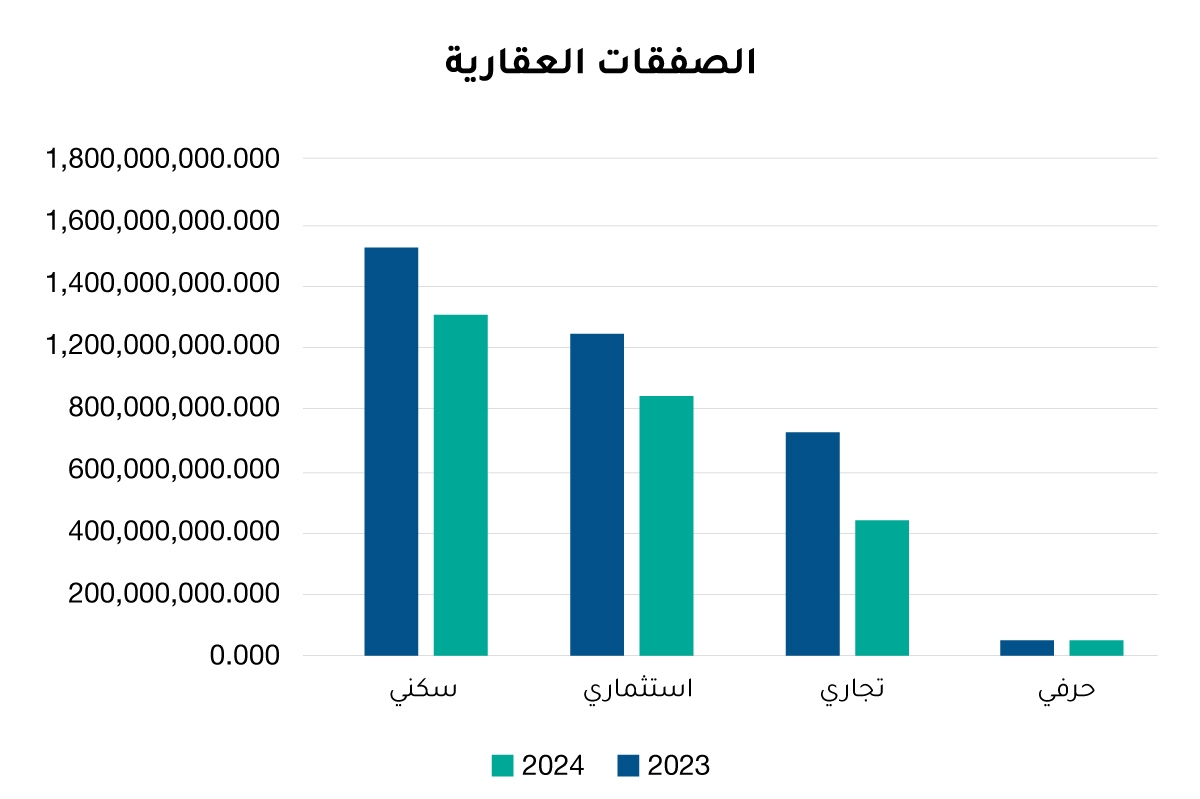 وعلى صعيد القطاع الحرفي، فقد شهد استقراراً نسبياً، إذ بلغت عدد الصفقات 34 لعام 2024 مقارنة بـ35 من 2023، ويفضل المستثمرون هذا القطاع عن القطاعات الأخرى المشابهة له في التخصيص لأنها عقارات ذات وثيقة حرة.