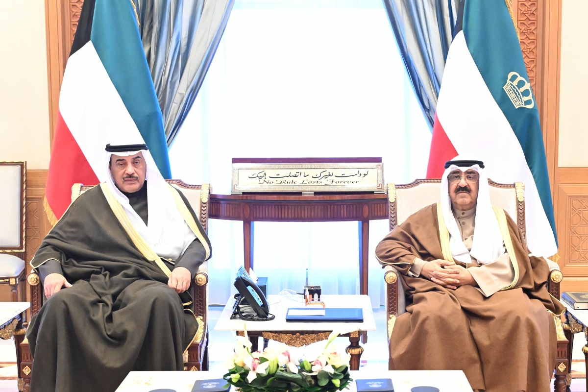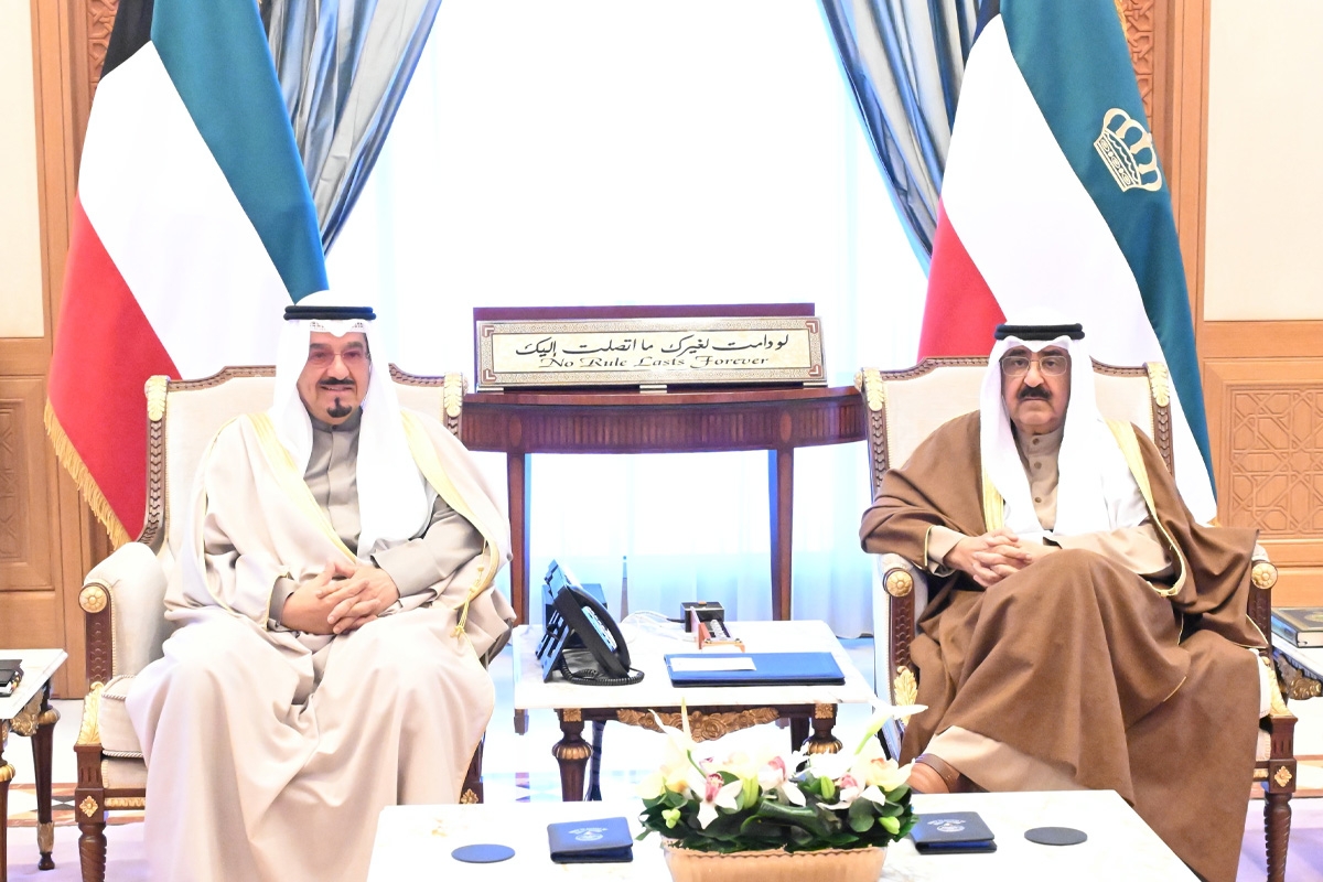 استقبل سمو أمير البلاد، الشيخ مشعل الأحمد، بقصر السيف، صباح اليوم، سمو ولي العهد الشيخ صباح الخالد.
