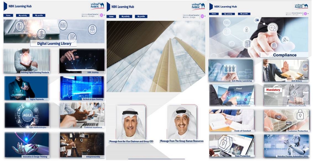 كما تم إثراء تجربة الموظفين في التعلم عبر منصة الوطني التعليمية Hub Learning NBK، التي تساعد على توفير عملية التعلم بمفهوم أشمل وأوسع، وبما يتماشى مع معايير الوصول الحديثة، مع توافره بلغات وأشكال متعددة، بجانب المكتبة الرقمية للمنصة، والتي تم إثراؤها بالتعاون مع CrossKnowledge العالمية المتخصصة في المحتوى التدريبي، والذي يتم إعداده من قبل أعضاء في هيئة تدريس لجامعات، مثل: ستانفورد، وهارفارد، وإنسياد وMIT وIE Business.