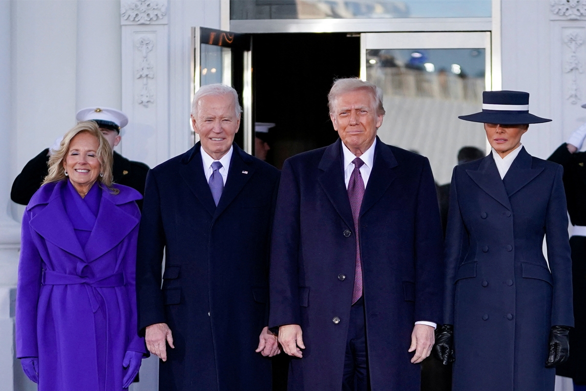 وقبل وصوله إلى الكونغرس برفقة زوجته ميلانيا، توجه ترامب إلى البيت الأبيض حيث كان بايدن وزوجته جيل بانتظارهما، لتناول شاي الصباح. وفي كلمة معبرة، رحب بايدن بخلفه قائلاً: «أهلاً بك في بيتك».