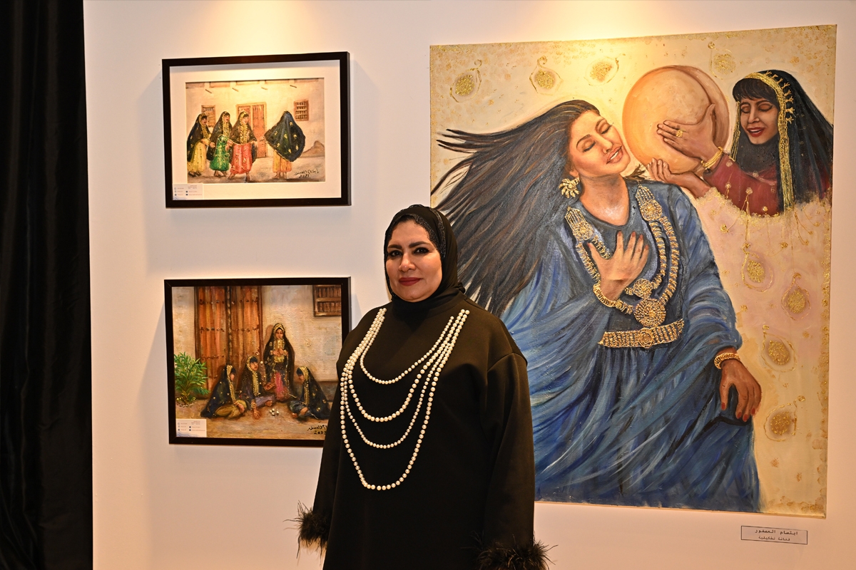 وحول مشاركتها في المعرض، قالت الفنانة العصفور: «أشارك بمناسبة الكويت عاصمة الثقافة العربية في 2025، من خلال 3 لوحات فنية تعبِّر عن المرأة والألوان والأزياء والجمال، في مشاهد تعكس التراث الكويتي، الذي أهتم به بشكل خاص، لذلك قدَّمت لوحات تراثية عن أزياء المرأة الكويتية قديماً مع الإكسسوارات الزاهية المصنوعة من الذهب، حيث تضم إحدى اللوحات فتاة ترقص السامري وهي تستمع لأنغام الطقاقة، وترتدي عقداً ذهبياً وحزاماً ذهبياً، وغيرها من الصور التي تعكس المرأة وأزياءها بالتراث الكويتي».