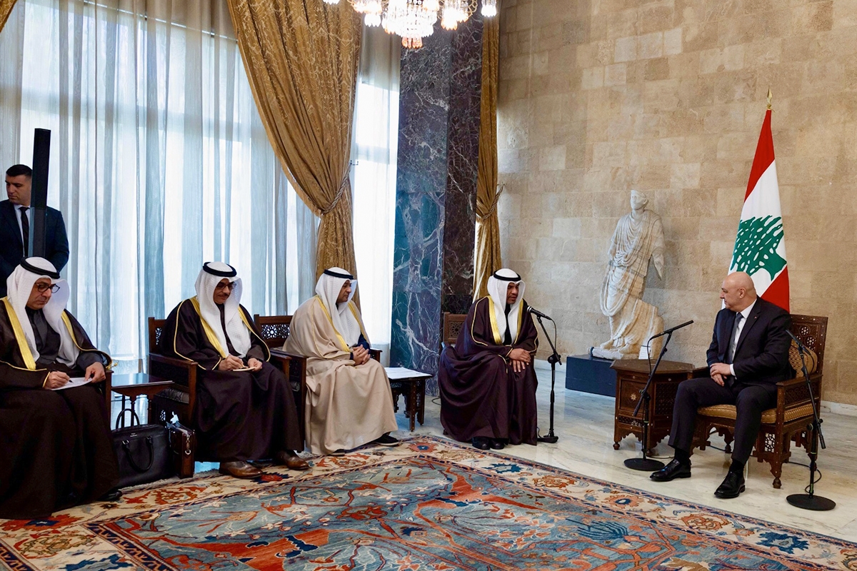 استقبل الرئيس اللبناني جوزيف عون، وزير الخارجية الكويتي، رئيس الدورة الحالية للمجلس الوزاري لمجلس التعاون لدول الخليج العربية، عبدالله اليحيا، بمعية الأمين العام لمجلس التعاون، جاسم البديوي، في العاصمة بيروت اليوم الجمعة.