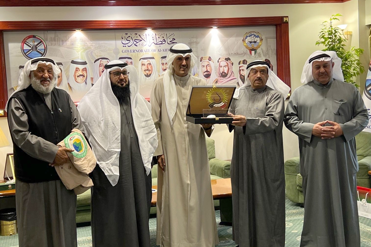 استقبل محافظ الأحمدي الشيخ حمود الجابر في مكتبه وفدا من جمعية المياه الكويتية يضم رئيس مجلس الإدارة د. صالح المزيني وعضو مجلس الإدارة م. محمد القناعي وعضو الجمعية فؤاد الجمعة، حيث ناقشوا جهود الجمعية وحملات الترشيد التي تقوم بها.