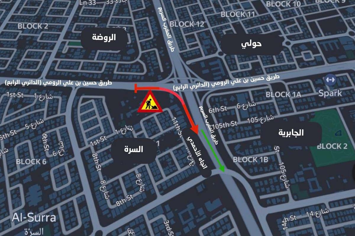 وقالت «المرور» في تدوينة عبر حساب وزارة الداخلية في منصة «إكس» إن أعمال الصيانة المشار إليها سيترتب عليها إغلاق المخرج الفرعي من طريق الدائري الرابع جهة منطقة السرة للقادم من منطقة الشويخ باتجاه السالمية والمؤدي إلى مدينة الأحمدي عبر طريق المغرب السريع.