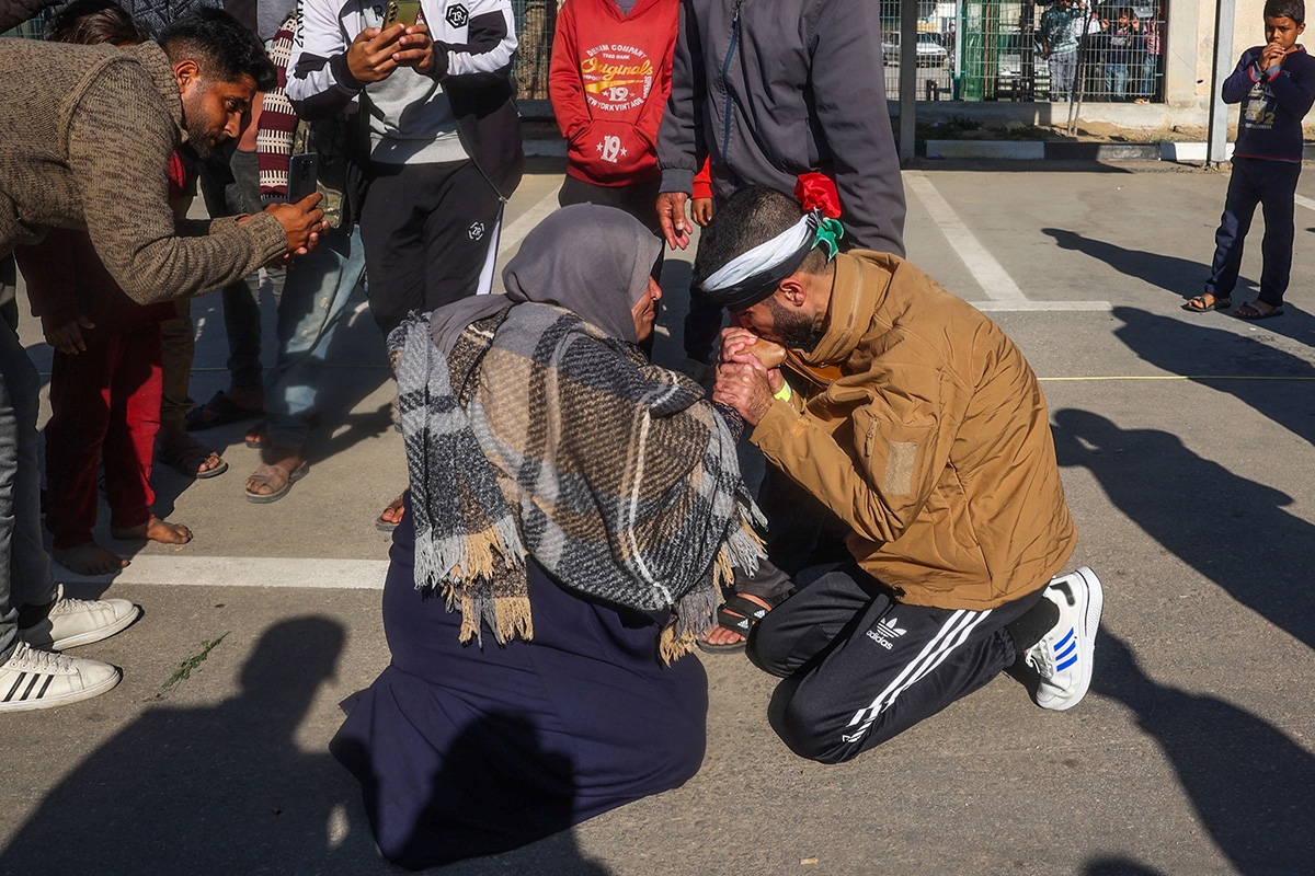 • حشود فلسطينية في خان يونس تستقبل معتقلين أُفرج عنهم في إطار اتفاق الهدنة