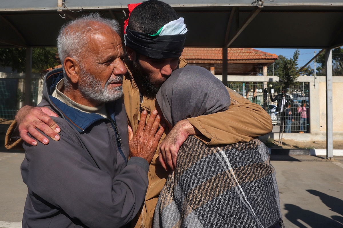 تدفّق حشد من الفلسطينيين السبت إلى خان يونس في جنوب قطاع غزة لاستقبال عدد من الحافلات والسيارات التي تقلّ 150 معتقلاً أُفرج عنهم في إسرائيل في إطار اتفاق الهدنة بين حماس والدولة العبرية.