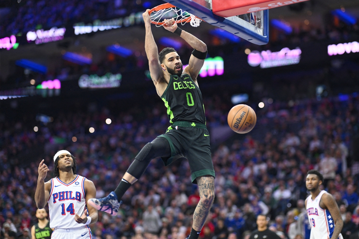 قلب بوسطن سلتيكس حامل اللقب الموسم الماضي تخلفه بفارق 26 نقطة أمام فيلادلفيا سفنتي سيكسرز ليخرج فائزا 118-110 بفضل 35 نقطة لنجمه جايسون تايتوم ضمن دوري كرة السلة الأميركي للمحترفين.