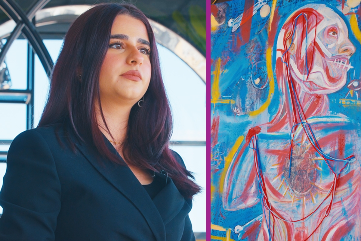 وحول أقرب أعمالها إلى نفسها قالت: «هي أحد مشاريعي في الجامعة، حين طلب منّا أحد الأساتذة تقديم عمل فني حول الطبقات، ففكرت أن الإنسان نفسه لديه طبقات في داخله، حتى جسم الإنسان مليء بالطبقات، وأن الأمر ليس فسيولوجيا فقط، لكنه معنوي وحسي إلى حد كبير، كالعمق في الشخصية الإنسانية، وحاولت المزج بين هاتين الفكرتين في عمل واحد، من خلال لوحة تصوّر طبقات جسم الإنسان، واستعنت خلالها بصديقة طبيبة، لأتعلّم منها أصول عملية التشريح على الورق، ومن خلال هذه اللوحة حاولت أن أضيف لمسة مختلفة للوحة من خلال جسم بشري أشبه بعملية التشريح، حتى أن الشرايين والأوردة والأنسجة ظاهرة بوضوح، واستخدمت في تكوينها خطوط النسيج، لأمنح الصورة لمسة حياة تكسر جمود اللوحة، وبالفعل أثارت تفاصيل العمل كل من يشاهده، وحظيت بتقدير كبير وإعجاب الجميع».
