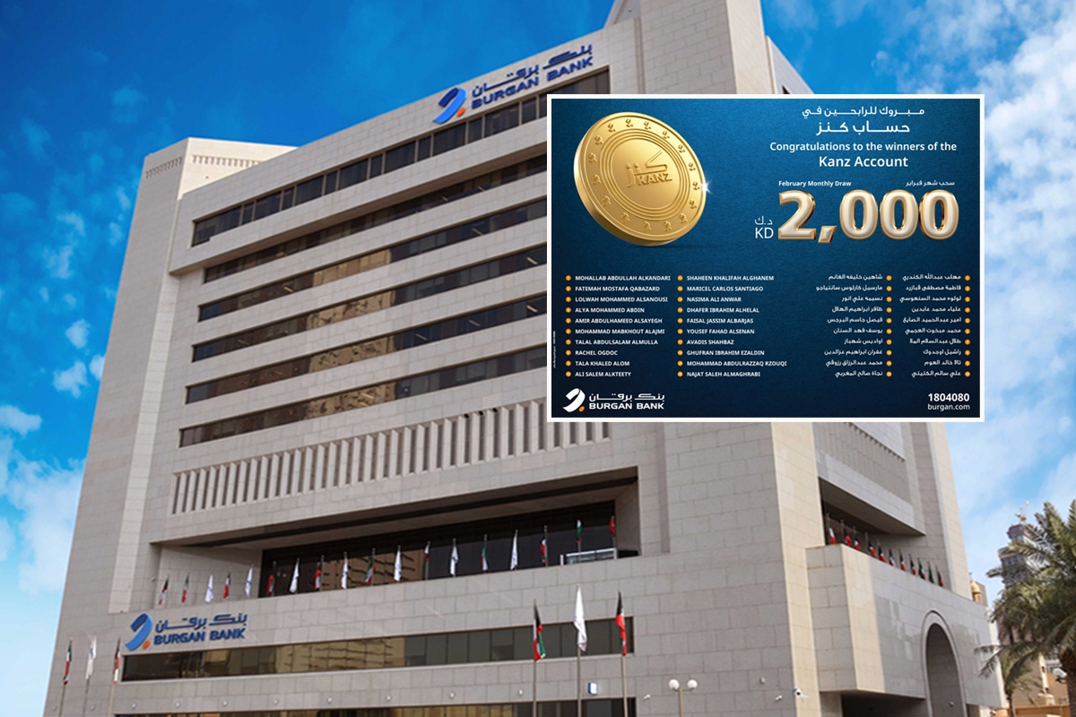 أعلن بنك برقان اليوم عن أسماء العشرون فائز في السحب الشهري لحساب كنز، والذين سيحصل كل منهم على جائزة نقدية بقيمة 2,000 دينار كويتي. يدخل هذا السحب كل عملاء حساب كنز الذين يحافظون على رصيد بحد أدنى 200 دينار كويتي لمدة أسبوع على الأقل قبل تاريخ السحب، وتزداد فرصهم في الفوز كلما ازدادت إيداعاتهم في الحساب.