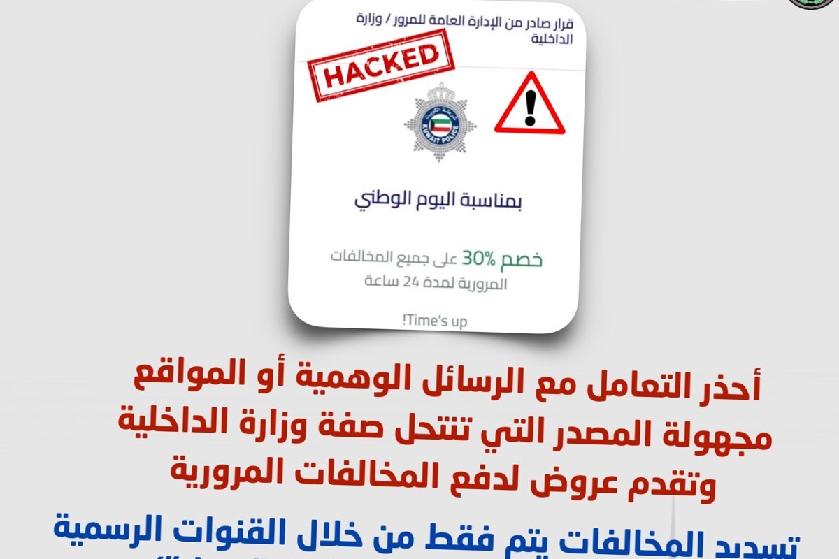 أكدت وزارة الداخلية إن قطاع شؤون المرور والعمليات ممثلا في الإدارة العامة للمرور لا يقوم بإرسال رسائل نصية من أرقام هواتف دولية، كما أنه لا يقدم عروض «خصومات» على المخالفات المرورية ويتوجب على الجميع التأكد من هوية المرسل والإبلاغ الفوري عن أي رسائل مشبوهة عبر خدمة «أمان» في تطبيق «سهل»، مؤكدة أن سداد المخالفات المرورية من خلال تطبيقي الداخلية وسهل