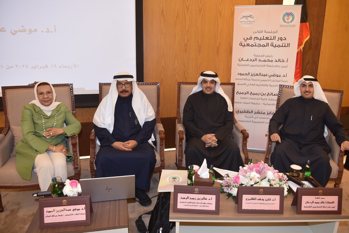 وبدأت جلسات الملتقى بالحديث عن دور التعليم في التنمية المجتمعية، والتي شارك فيها رئيسة المجلس التأسيسي لجامعة عبدالله السالم وزيرة التربية والتعليم العالي السابقة، د. موضي الحمود، ومستشار كلية الدراسات العليا للعلوم الإنسانية بجامعة الملك سعود بالسعودية د. صالح الرميح، والمتخصص في التربية والتطبيقات التعليمية التكنولوجية د. فايز الظفيري، وترأس الجلسة الأمين العام لرابطة الاجتماعيين خالد الردعان.