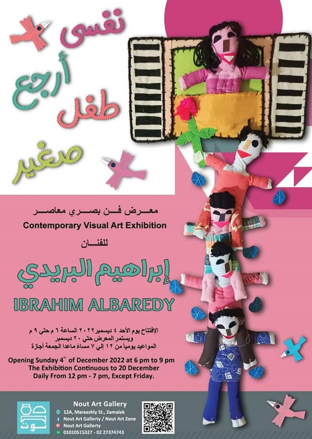 افتتح الفنان التشكيلي إبراهيم البريدي معرضه الجديد تحت عنوان «نفسي أرجع طفل صغير»، في غاليري نوت بضاحية الزمالك بالقاهرة، ويستمر المعرض حتى نهاية ديسمبر الجاري.