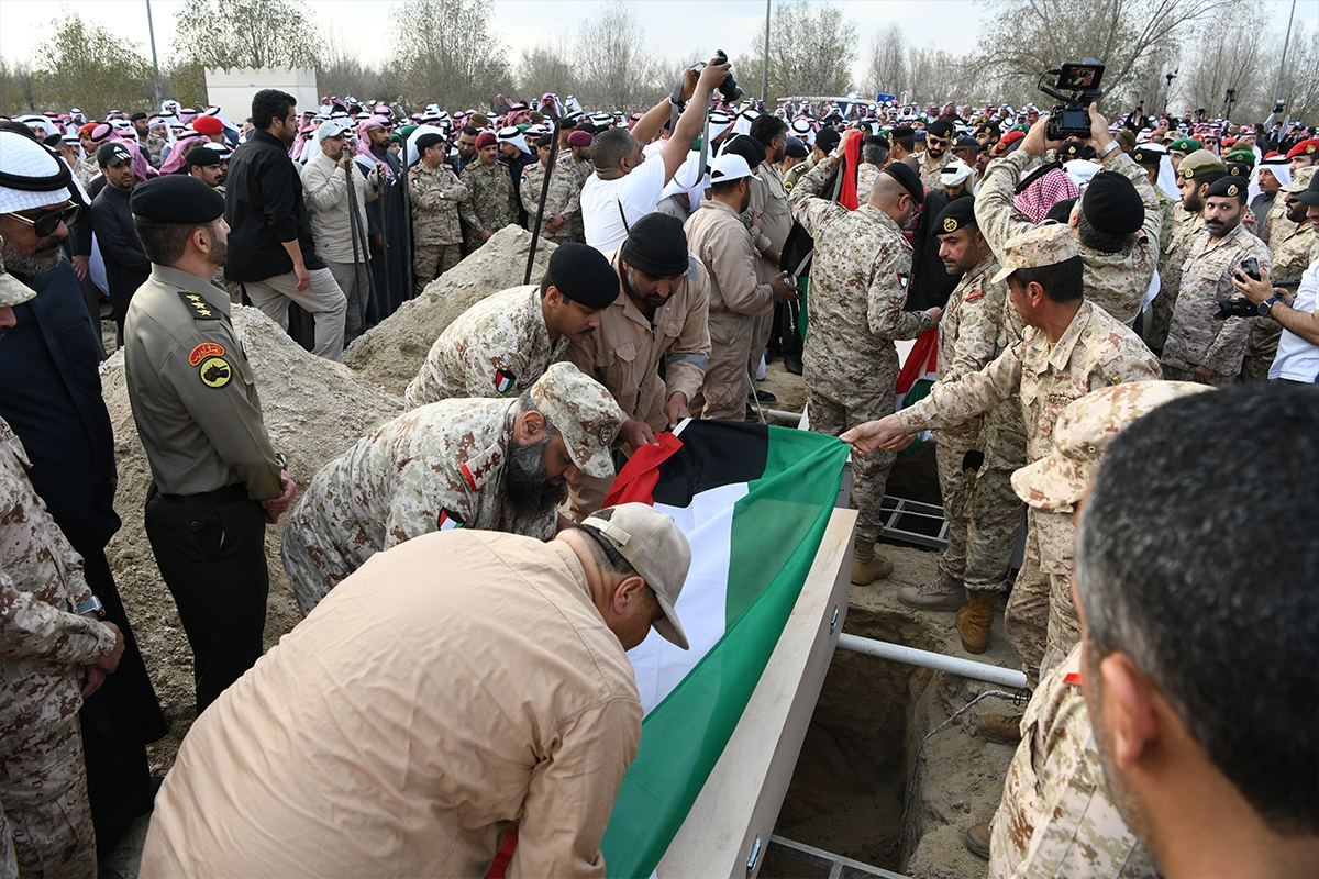 نعت وزارة الداخلية اليوم الخميس ممثلة بالنائب الأول لرئيس مجلس الوزراء ووزير الداخلية الشيخ فهد اليوسف ووكيل الوزارة الفريق الشيخ سالم نواف الأحمد الصباح وجميع منتسبي الوزارة من ضباط وضباط صف وأفراد ومهنيين ومدنيين ببالغ الحزن والأسى بوفاة المغفور لهما بإذن الله تعالى شهيدي الواجب الرقيب أول أحمد فرحان هراط والرقيب مساعد ضاحي صالح من منتسبي القوة البرية بوزارة الدفاع.