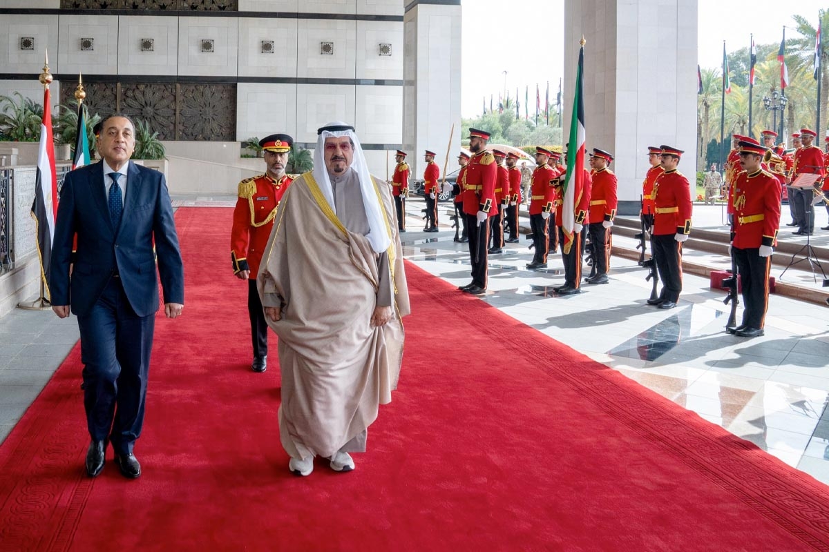 استقبل سمو الشيخ أحمد عبدالله الأحمد الصباح رئيس مجلس الوزراء في قصر بيان اليوم دولة رئيس مجلس وزراء جمهورية مصر العربية الدكتور مصطفى مدبولي والوفد المرافق له وذلك بمناسبة زيارته للبلاد.