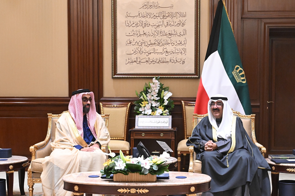 واستقبل سموه، نائب حاكم إمارة أبوظبي مستشار الأمن الوطني بدولة الإمارات العربية المتحدة الشقيقة، الشيخ طحنون بن زايد، والوفد المرافق، بمناسبة زيارته الرسمية للبلاد، حيث نقل لسموه تحيات وتقدير أخيه رئيس دولة الإمارات، الشيخ محمد بن زايد، وتمنياته لسموه بموفور الصحة وتمام العافية، ولشعب الكويت المزيد من الرقي والنماء.