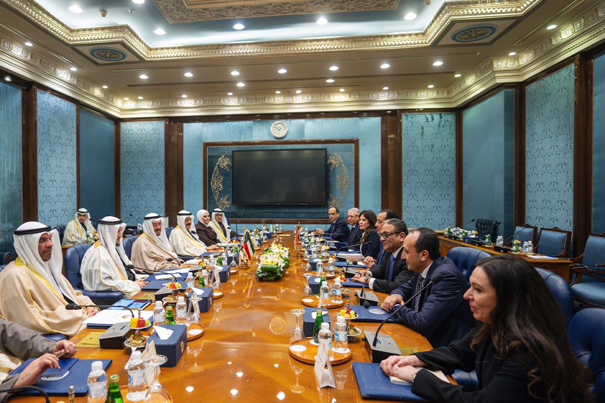 عقد رئيس مجلس الوزراء، سمو الشيخ أحمد العبدالله، في قصر بيان اليوم، جلسة مباحثات رسمية مع رئيس مجلس الوزراء المصري، د. مصطفى مدبولي، والوفد المرافق له.
