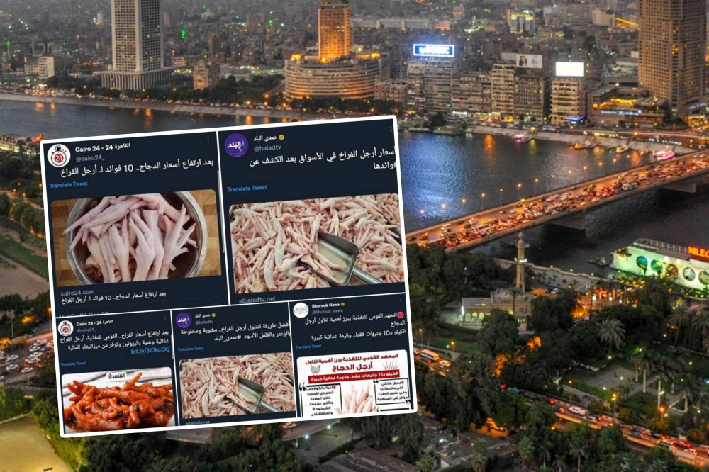 ضجت مواقع التواصل في مصر بمنشورات تنتقد «الحديث المتزامن» لوسائل الإعلام المصرية عن «فوائد أرجل الدجاج»، الأمر الذي اعتبروه تمهيداً لمزيد من رفع الأسعار.