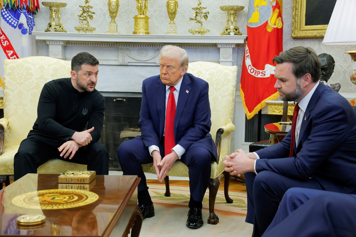 تحول لقاء بين الرئيس الأميركي دونالد ترامب والرئيس الأوكراني فولوديمير زيلينسكي يوم الجمعة إلى مشادة كلامية أشعلها نائب الرئيس الأميركي جي دي فانس في المكتب البيضاوي، وفيما يلي النص الحرفي لمقتطفات رئيسية من هذا النقاش المحتدم: