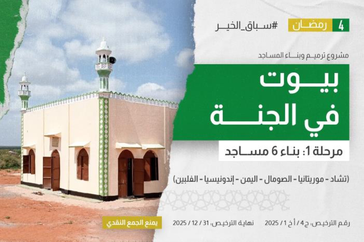 وأوضحت الجمعية، في بيان، أن المرحلة الأولى من هذه الحملة ستكون لبناء 6 مساجد في تشاد، وموريتانيا، والصومال، واليمن، وإندونيسيا، والفلبين، مؤكدة أن هذا المشروع صدقة جارية، ولا يجوز دفع الزكاة فيه.
