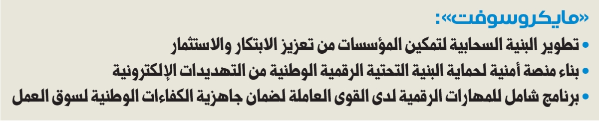 من جانبه، أكد رئيس «مايكروسوفت» في منطقة أوروبا والشرق الأوسط وإفريقيا، سامر أبولطيف، خلال المؤتمر الصحافي، أن الشراكة مع الكويت تعزز البنية التحتية الرقمية للدولة، وتسهم في استدامة الازدهار الاقتصادي، مضيفاً أن التزام «مايكروسوفت» بتطوير البنية السحابية للكويت يعكس رؤيتها في تمكين المؤسسات الحكومية والخاصة، وتعزيز بيئة الابتكار والاستثمار.