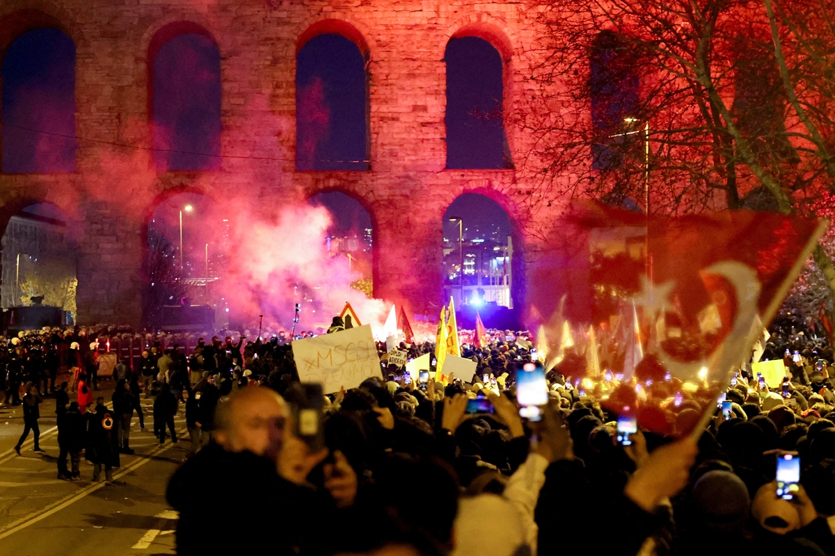وأدان أردوغان أمس الاحتجاجات متعهداً بعدم الرضوخ لـ «إرهاب الشارع»، فيما خرج مئات آلاف الأتراك في احتجاجات ليل السبت ـ الاحد حملت عنوان «ليلة للديموقراطية» لليلة الثالثة على التوالي، تنديداً بتوقيف إمام أوغلو الذي وصف التظاهرات بأنها «إلهام للعالم»، على الرغم من حظر المظاهرات.