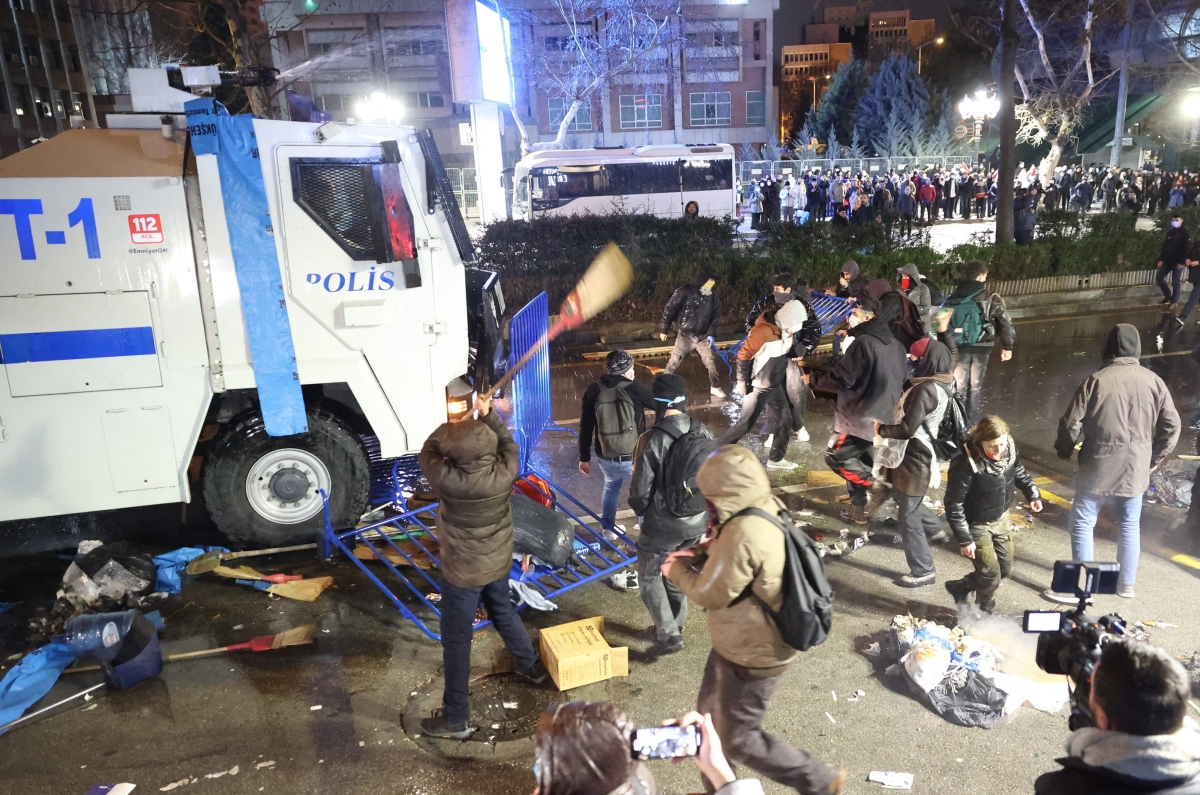 ووقعت صدامات مساء الجمعة في إسطنبول وإزمير (غرب) بين متظاهرين والشرطة التي استخدمت الرصاص المطاطي في إسطنبول، بحسب ما أفاد مراسلو وكالة فرانس برس. أما في إزمير، ثالث أكبر مدن البلاد، فقد استخدمت الشرطة خراطيم المياه، بحسب لقطات بثتها محطات محلية.
