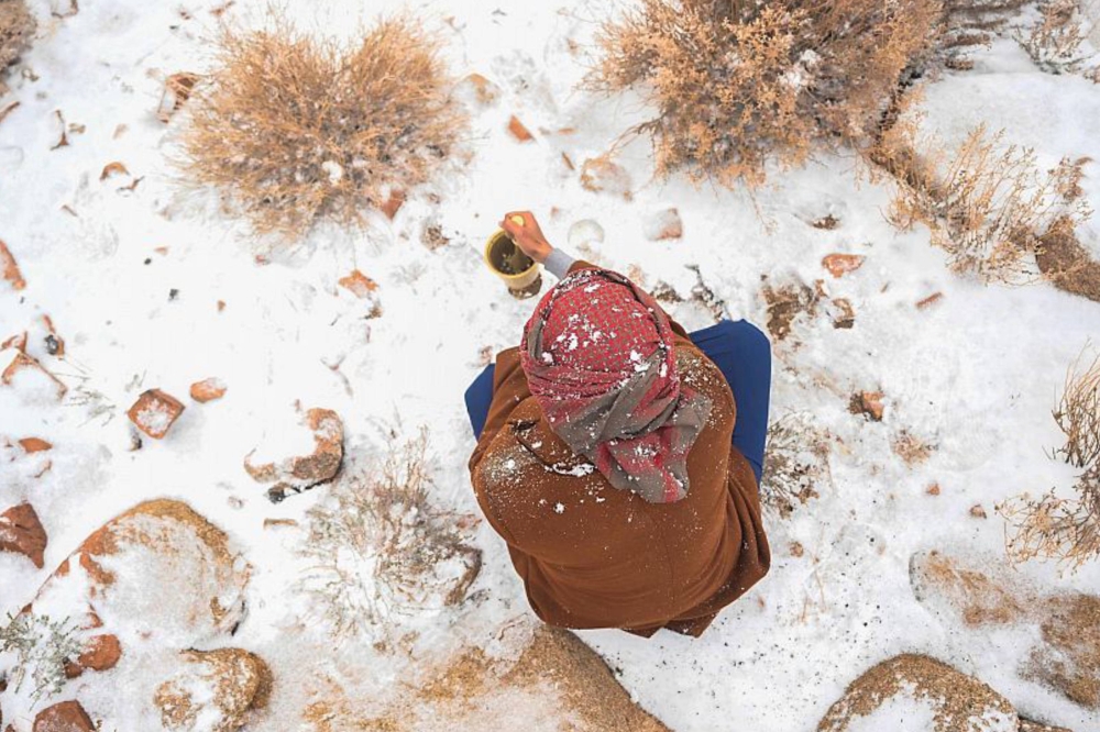 الثلوج تغطي قمم جبل اللوز بمنطقة تبوك السعودية