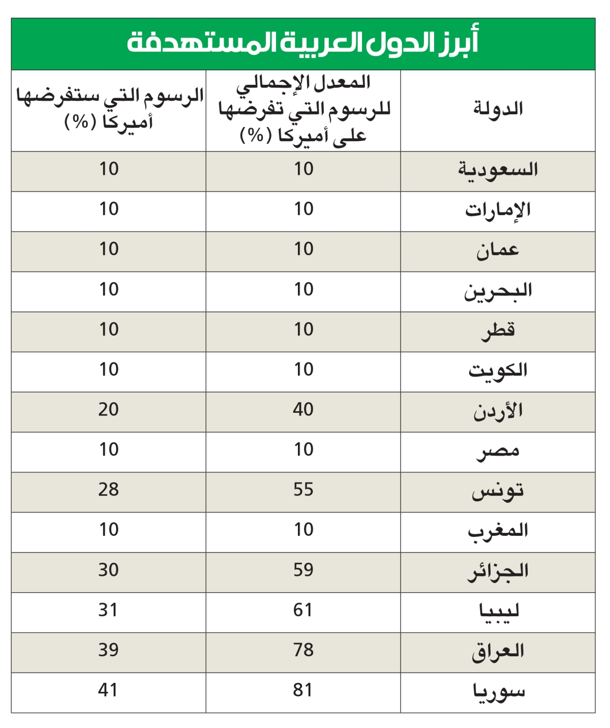 فرض ترامب رسوماً جمركية على جميع دول مجلس التعاون الخليجي بـ 10 في المئة، أي بالحد الأدنى.