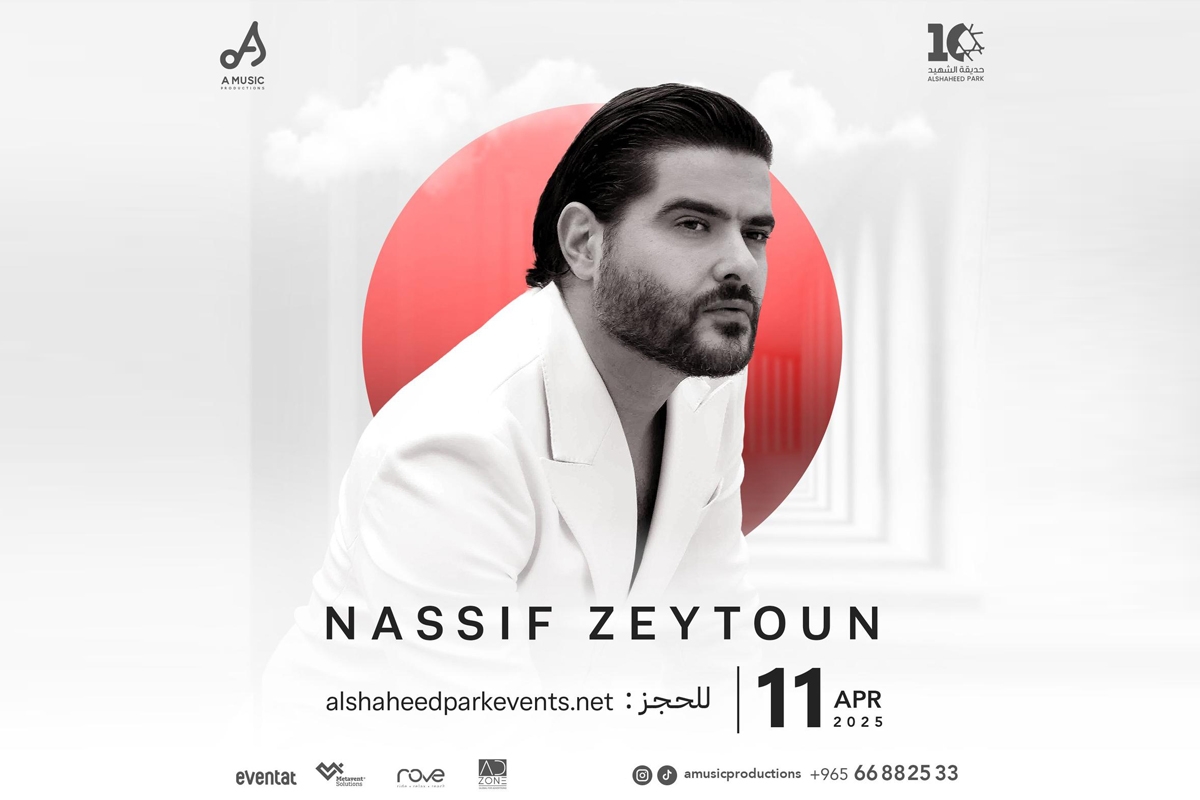 يحيي المطرب السوري ناصيف زيتون حفلاً يوم الجمعة المقبل (11 الجاري) على المسرح المكشوف بحديقة الشهيد، بأمسية فنية استثنائية من إنتاج وتنظيم شركة A Music.