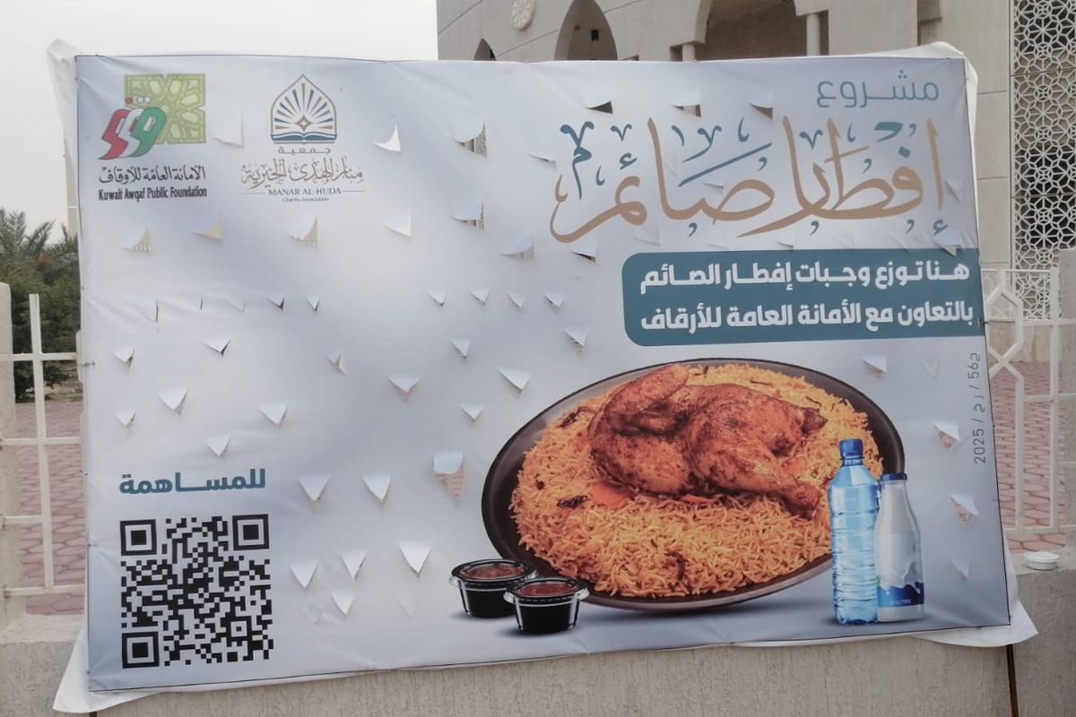 أعلنت جمعية منار الهدى الخيرية تنفيذ مصرف «إفطار صائم» الذي يهدف الى توزيع وجبات الإفطار على العمال والمحتاجين داخل الكويت خلال شهر رمضان، بالتعاون مع الأمانة العامة للأوقاف.