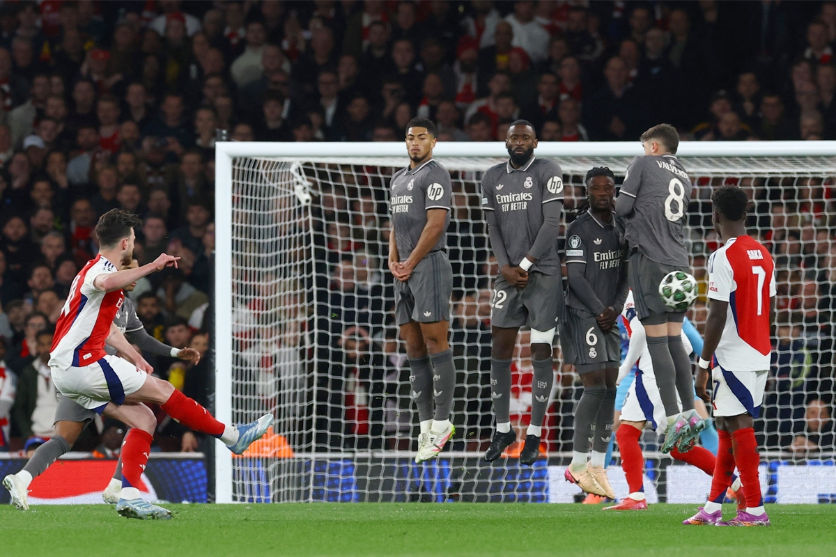 أكد ديكلان رايس، الذي سجل هدفين في ريال مدريد، الأربعاء، أنه تحمس لفكرة التسجيل بعدما رأى الجدار الذي شكله لاعبو الريال، وبعد رؤيته لموقع تمركز الحارس تيبو كورتوا، خلال لقاء الفريقين مساء الثلاثاء في ذهاب ربع نهائي دوري الأبطال في لندن.