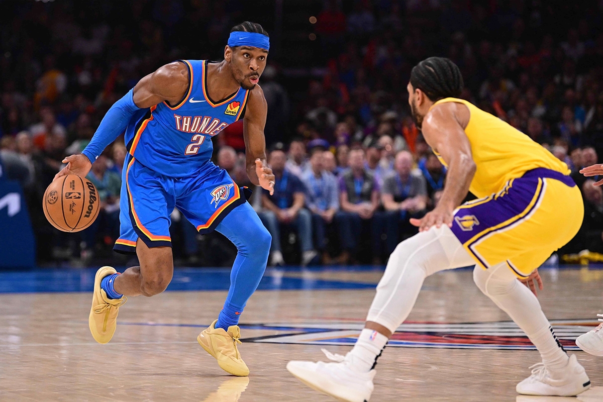 سجل الكندي شاي غلجيوس ــ ألكسندر 42 نقطة، وقاد فريقه أوكلاهوما سيتي ثاندر للفوز على لوس أنجلس ليكرز 136-120 أمس الأول، في مباراة حامية الوطيس شهدت طرد نجم الاخير السلوفيني لوكا دونتشيتش في الربع الاخير، ضمن دوري كرة السلة الاميركي للمحترفين (أن بي ايه).