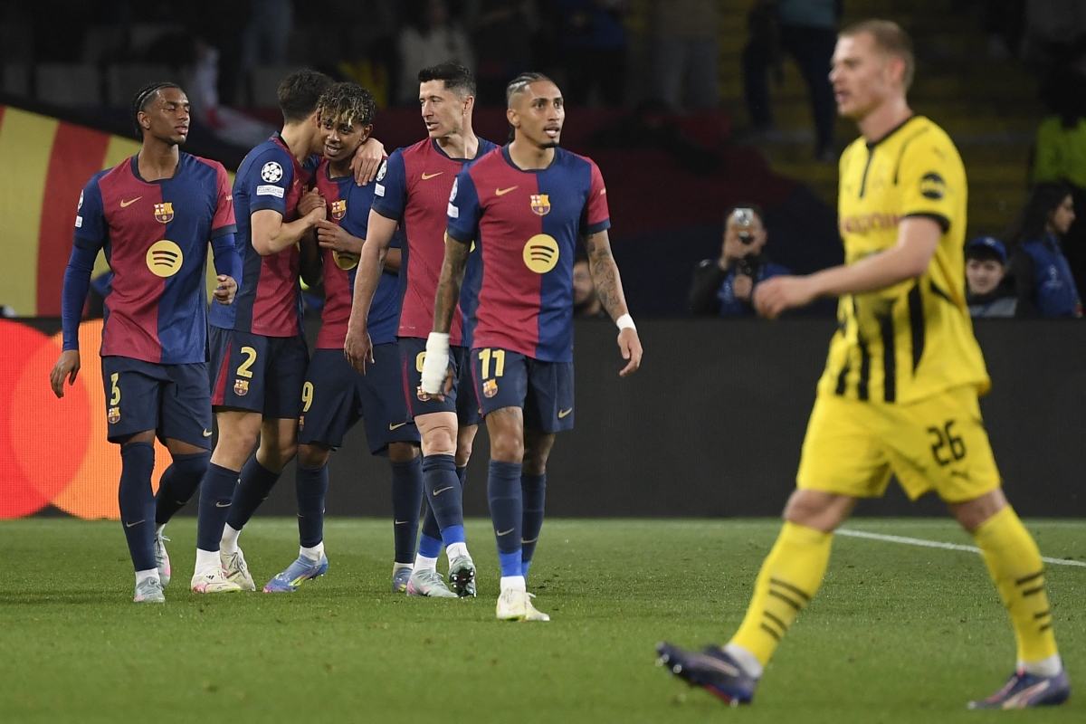 وضع برشلونة الإسباني قدماً في نصف نهائي دوري أبطال أوروبا لكرة القدم بعد فوزه الكبير على ضيفه بوروسيا دورتموند الألماني وصيف النسخة الماضية، برباعية نظيفة في مباراة ذهاب دور ربع النهائي التي أُقيمت مساء الأربعاء.