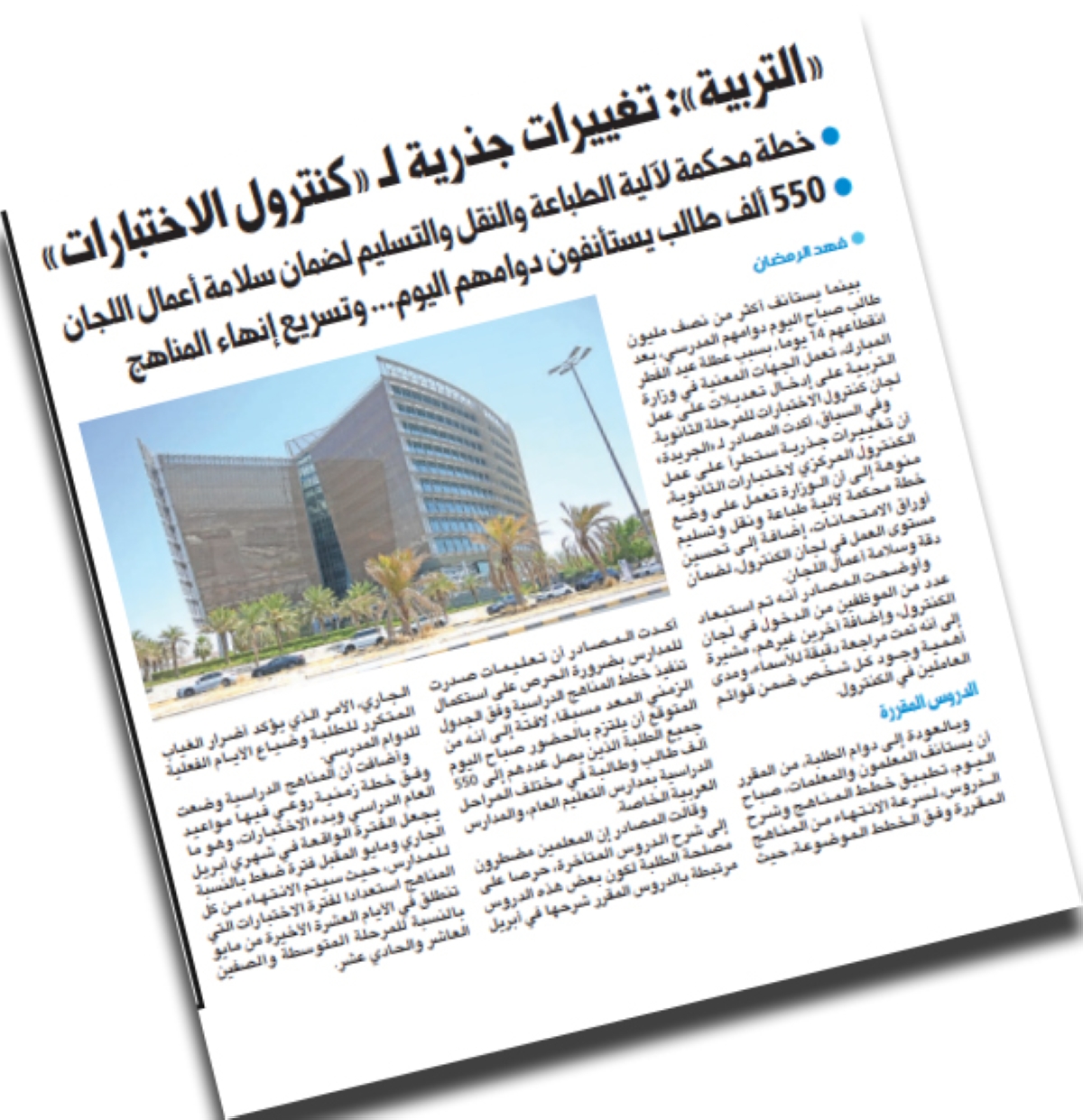 تأكيداً لخبر «الجريدة» المنشور في 6 الجاري حول تعديلات جذرية فيما يخص كنترول اختبارات الثانوية، أصدر وزير التربية سيد جلال الطبطبائي، قرارا يحدد آليات العمل والمعايير الخاصة بأعمال الامتحانات والكنترول والتصحيح في مختلف المناطق التعليمية والمراحل الدراسية، ويشمل ضوابط اختيار أعضاء اللجان وأعدادهم وآلية تشكيل اللجان الخاصة، إضافة إلى أعداد ترشيح وتوزيع وشروط اختيار المراقب الوطني.