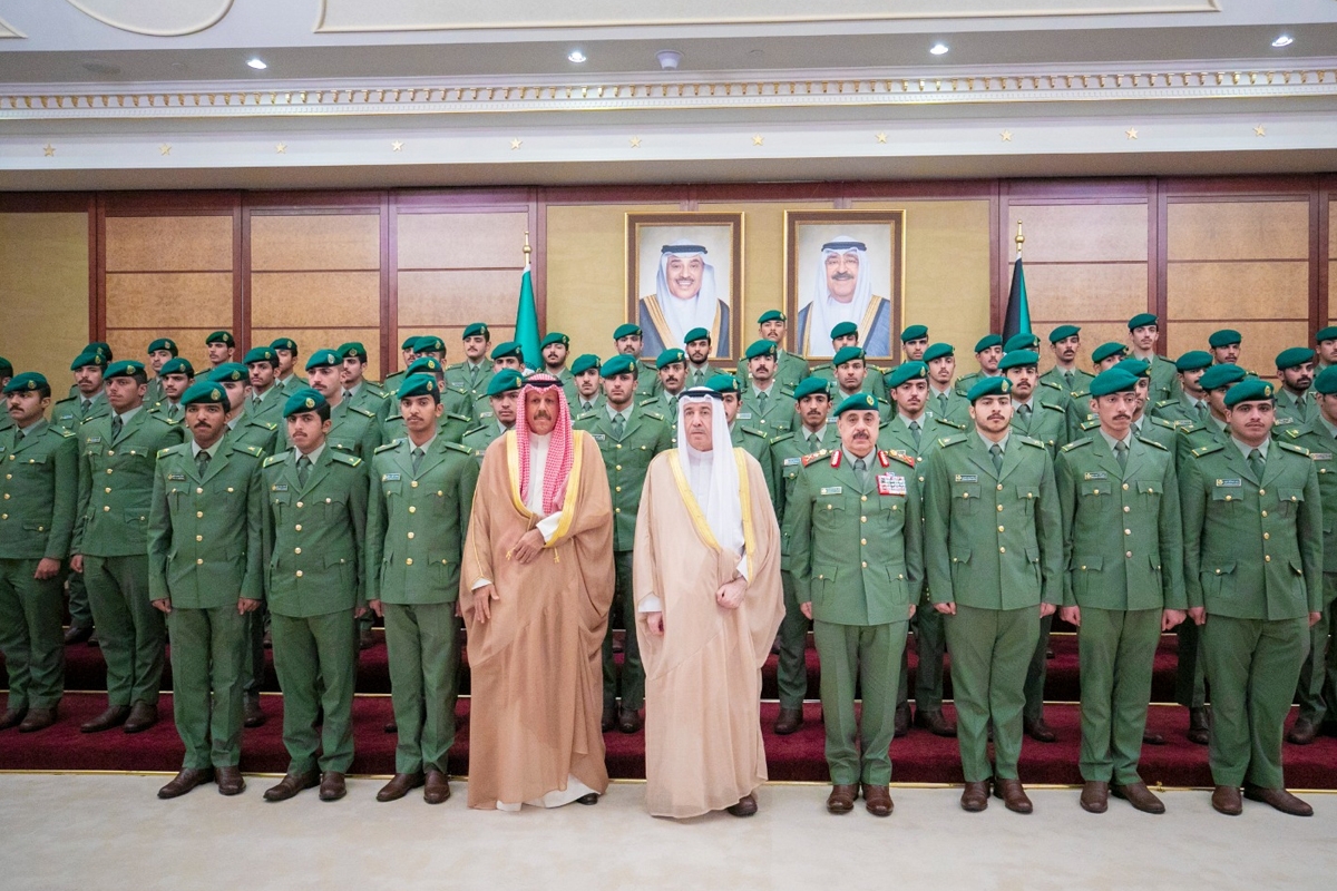 احتفل الحرس الوطني بتولية 63 ضابطاً من خريجي كلية علي الصباح العسكرية وأكاديمية سعد العبدالله للعلوم الأمنية، تحت رعاية وحضور رئيس الحرس الشيخ مبارك الحمود ونائب رئيس الحرس الشيخ فيصل النواف، ووكيل الحرس الفريق الركن مهندس هاشم الرفاعي وكبار القادة والضباط.
