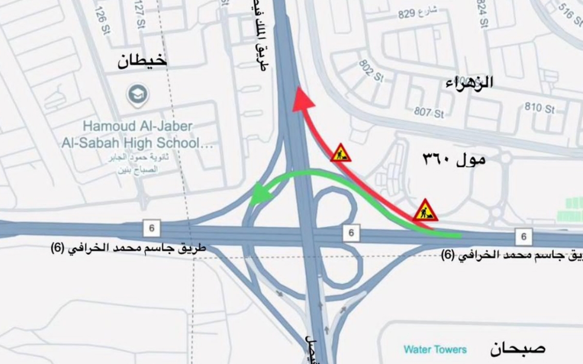 أعلنت وزارة الداخلية، ممثلة في الإدارة العامة للمرور، عن إغلاق الطريق الفرعي للقادم من طريق جاسم الخرافي (الدائري السادس) والمؤدي إلى طريق الملك فيصل (طريق 50) باتجاه مدينة الكويت اعتبارا من اليوم وحتى 7 مايو المقبل.