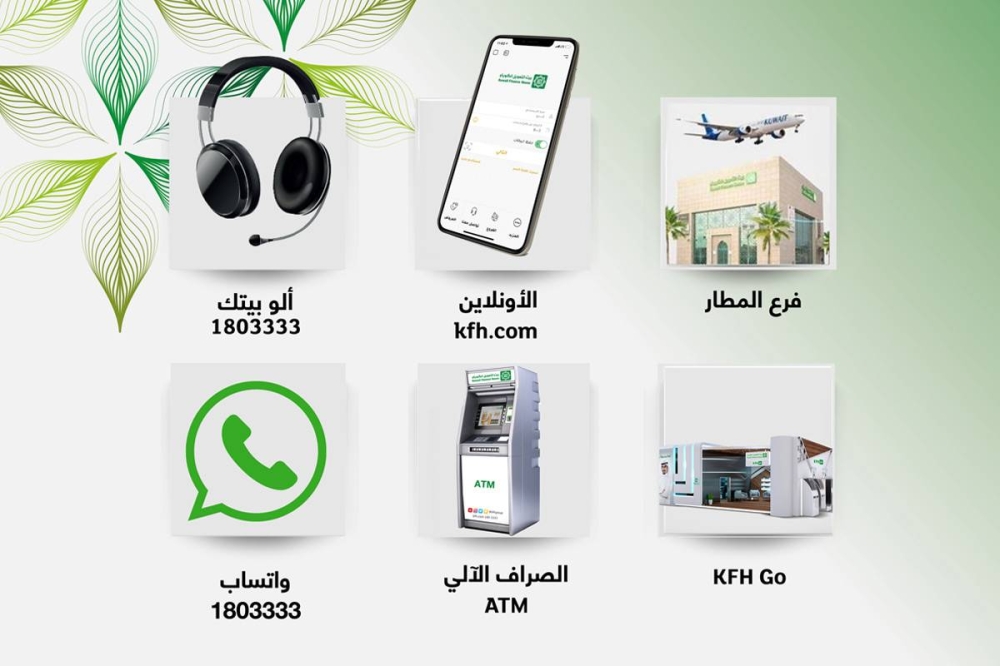 وتتوفر معظم الخدمات المصرفية عبر الموقع الإلكتروني kfh.com، أو عبر تطبيق الموبايل KFHOnline، أو عبر فروع KFH Go الإلكترونية المنتشرة في العديد من المناطق والمواقع المهمة، بالإضافة إلى قنوات «بيتك» على وسائل التواصل الاجتماعي، الى جانب العديد من قنوات الخدمة الإلكترونية بالاعتماد على أحدث أدوات التكنولوجيا المالية والمنصات الرقمية.