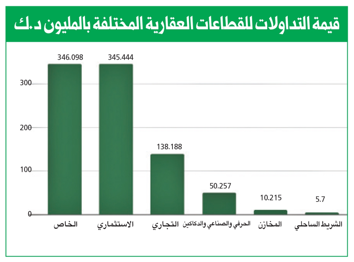 رغم أن القطاع السكني سجل تراجعاً طفيفاً في قيمة التداولات بنسبة 2%، إذ بلغت قيمة تداولاته 346 مليون دينار مقابل 353 مليوناً في الفترة المقابلة من العام الماضي، فإن عدد الصفقات ارتفع بنسبة 11.73% ليصل إلى 876 صفقة مقارنة بـ784 صفقة، وهو ما يشير إلى حركة نشطة في المبيعات وإن كانت ضمن نطاق سعري منخفض نسبياً.