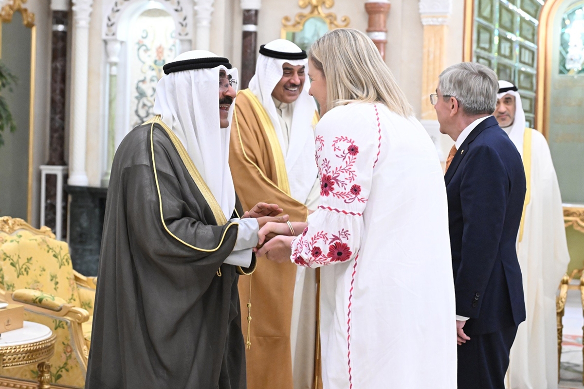 استقبل صاحب السمو أمير البلاد، الشيخ مشعل الأحمد، بقصر بيان ظهر أمس، بحضور سمو ولي العهد الشيخ صباح الخالد، ورئيس مجلس الوزراء بالإنابة الشيخ فهد اليوسف، رئيس اللجنة الأولمبية الدولية د. توماس باخ، والرئيسة المنتخبة للجنة الأولمبية الدولية الجديدة كيرستي كوفنتري، وأعضاء اللجنة الأولمبية الدولية، واللجان الأولمبية الوطنية، وذلك بمناسبة زيارتهم للبلاد.