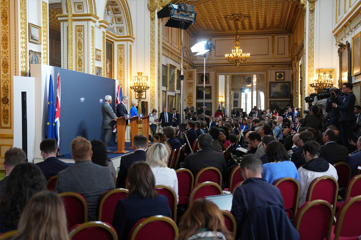 واستضاف ستارمر رئيسة المفوضية الأوروبية أورسولا فون دير لاين ورئيس المجلس الأوروبي أنطونيو كوستا ومسؤولين كبار في لندن، في أول قمة رسمية بين المملكة المتحدة والاتحاد الأوروبي منذ (بريكست).