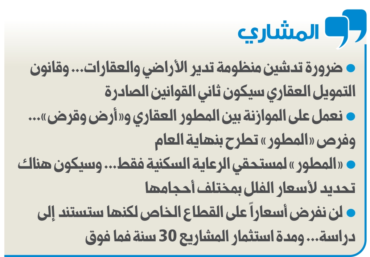 • المشاري: منظومة لإدارة أراضي الدولة... و«المطور العقاري» لمستحقي الرعاية فقط