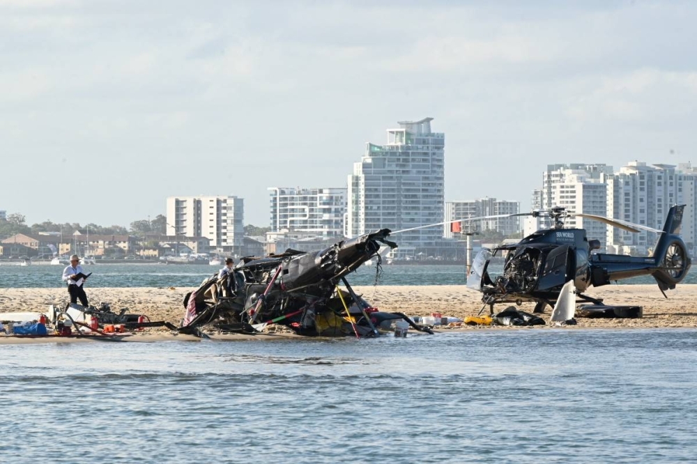 وقالت هيئة البث الأسترالي إن إحدى المروحتين وتحمل شعار «سي وورلد» تمكنت من الهبوط بنجاح، بينما يمكن رؤية حطام على جزيرة رملية صغيرة.