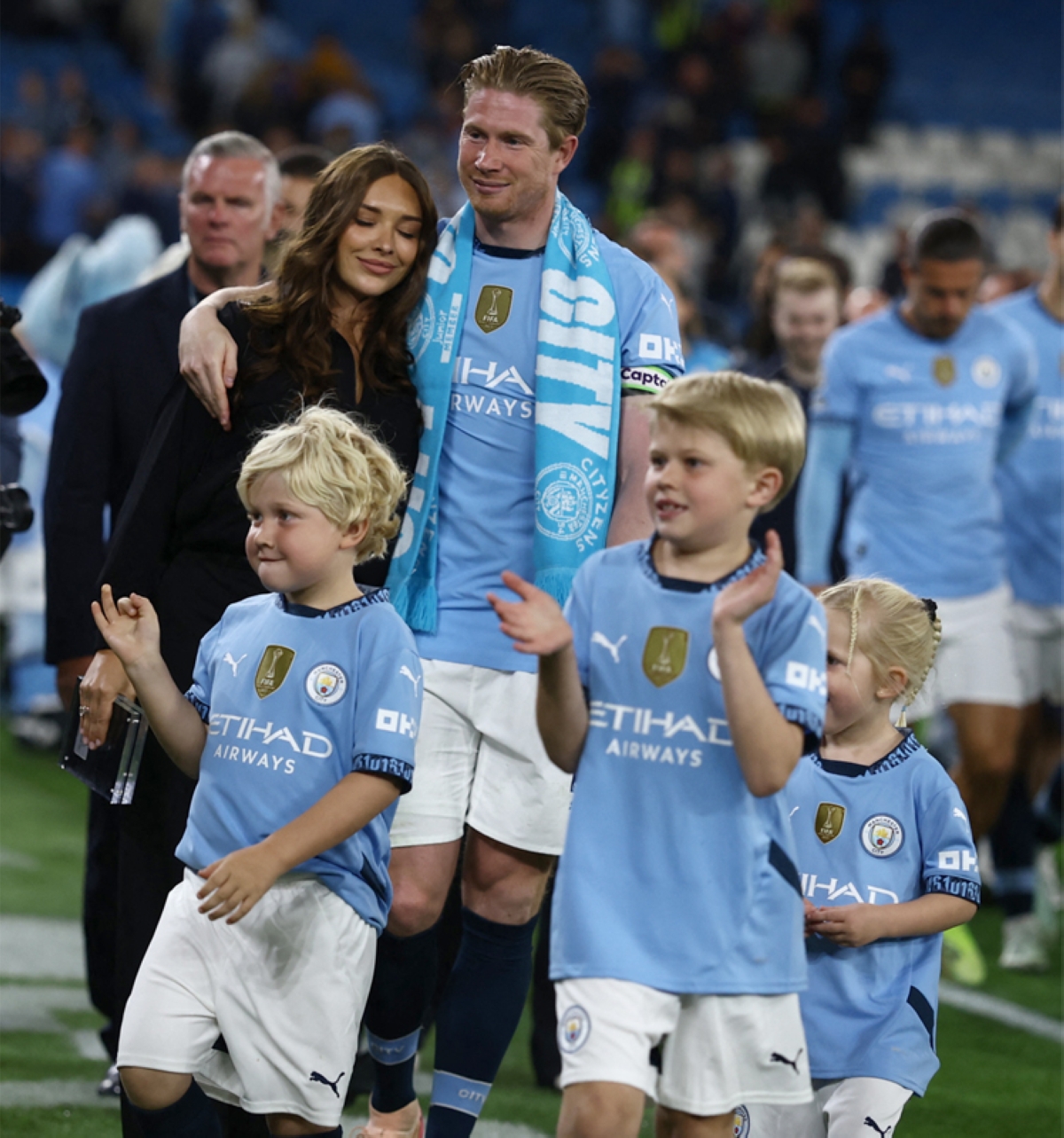 وصنع لاعبو مانشستر سيتي والجهاز الفني ممراً شرفياً لدي بروين أثناء دخوله للملعب مع زوجته ميشيل وأطفاله الثلاثة.
