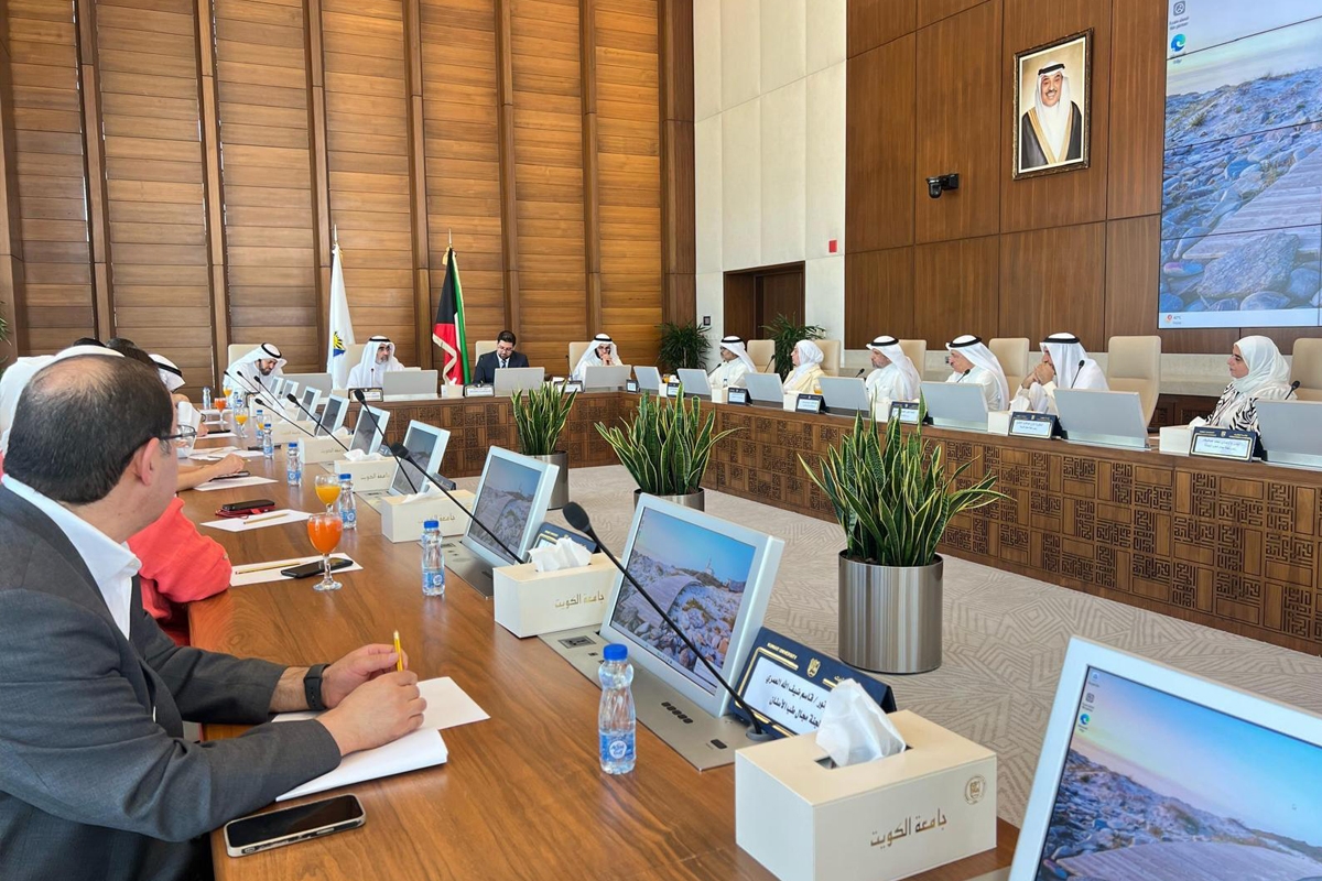 عقدت كلية الدراسات العليا اجتماع مجلس الكلية السادس للعام الجامعي 2024–2025، بحضور عميد الكلية بالإنابة د. أحمد المخيال، والعميد المساعد للشؤون الأكاديمية د. مشاري العيفان، والعميد المساعد للتخطيط والتطوير بالإنابة د. محمد السماوي، ورؤساء المجال بالكليات الجامعية، في قاعة اجتماعات مجلس الجامعة بمدينة صباح السالم الجامعية.