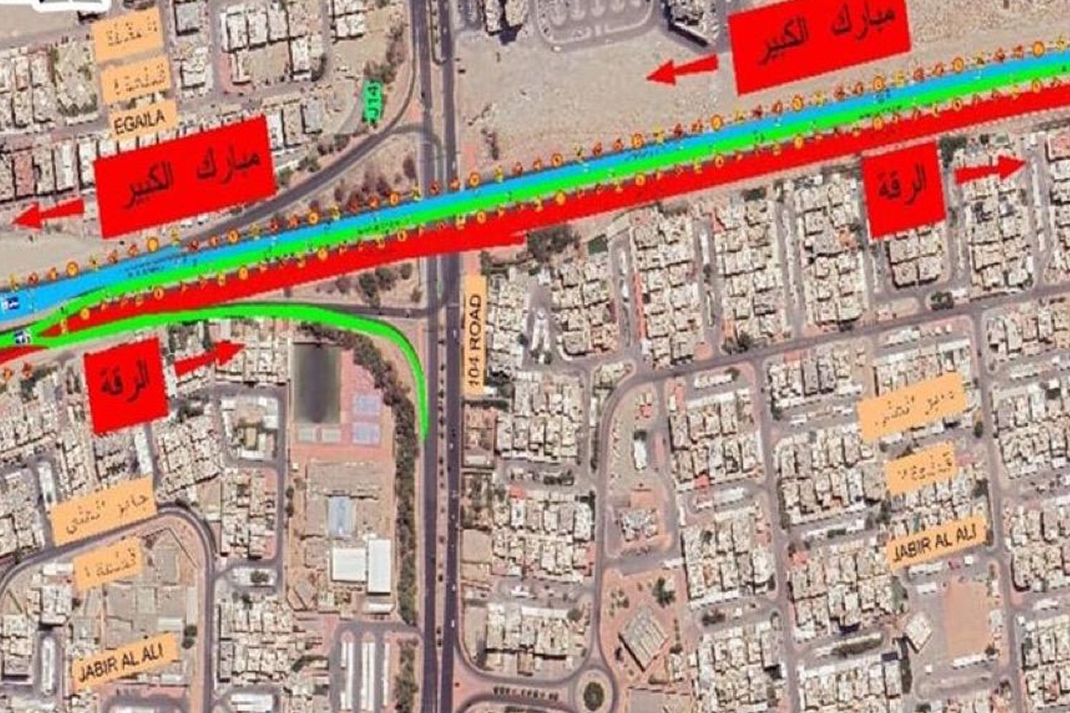 وقالت الهيئة إن التحويلة تقع ما بين جابر العلي والعقيلة من تقاطع شارع الغوص مع طريق الدائرى السابع إلى بداية الجسر عند تقاطع شارع الغوص مع شارع خليفه طلال الجرى.