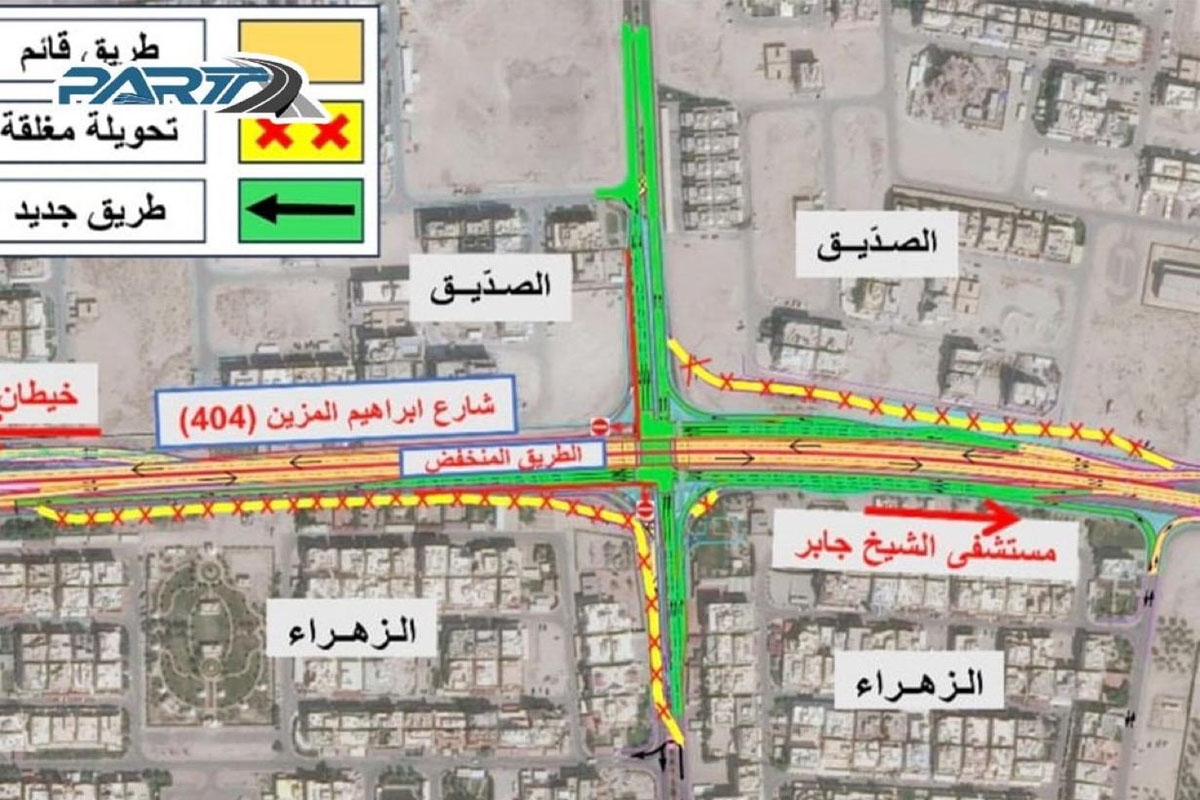 أعلنت الهيئة العامة للطرق والنقل البري، بالتعاون مع الإدارة العامة للمرور، عن افتتاح تقاطع الإشارة الضوئية على طريق إبراهيم المزين (شارع 404)، الذي يربط بين منطقتي الصديق والزهراء، وذلك في إطار جهود تطوير البنية التحتية وتحسين انسيابية الحركة المرورية.