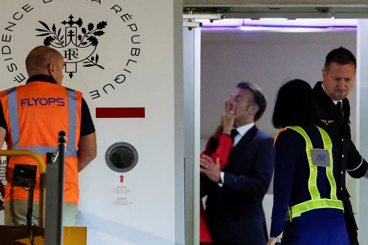 وبدا الرئيس مفاجئاً، لكنه سرعان ما استدار نحو خارج الطائرة ليلقي التحية. وعندما بدأ الزوجان الرئاسيان النزول على درج الطائرة، مدّ ماكرون ذراعه لزوجته كعادته، إلا أنها لم تمسكها بل تمسكت بحافة الدرج.