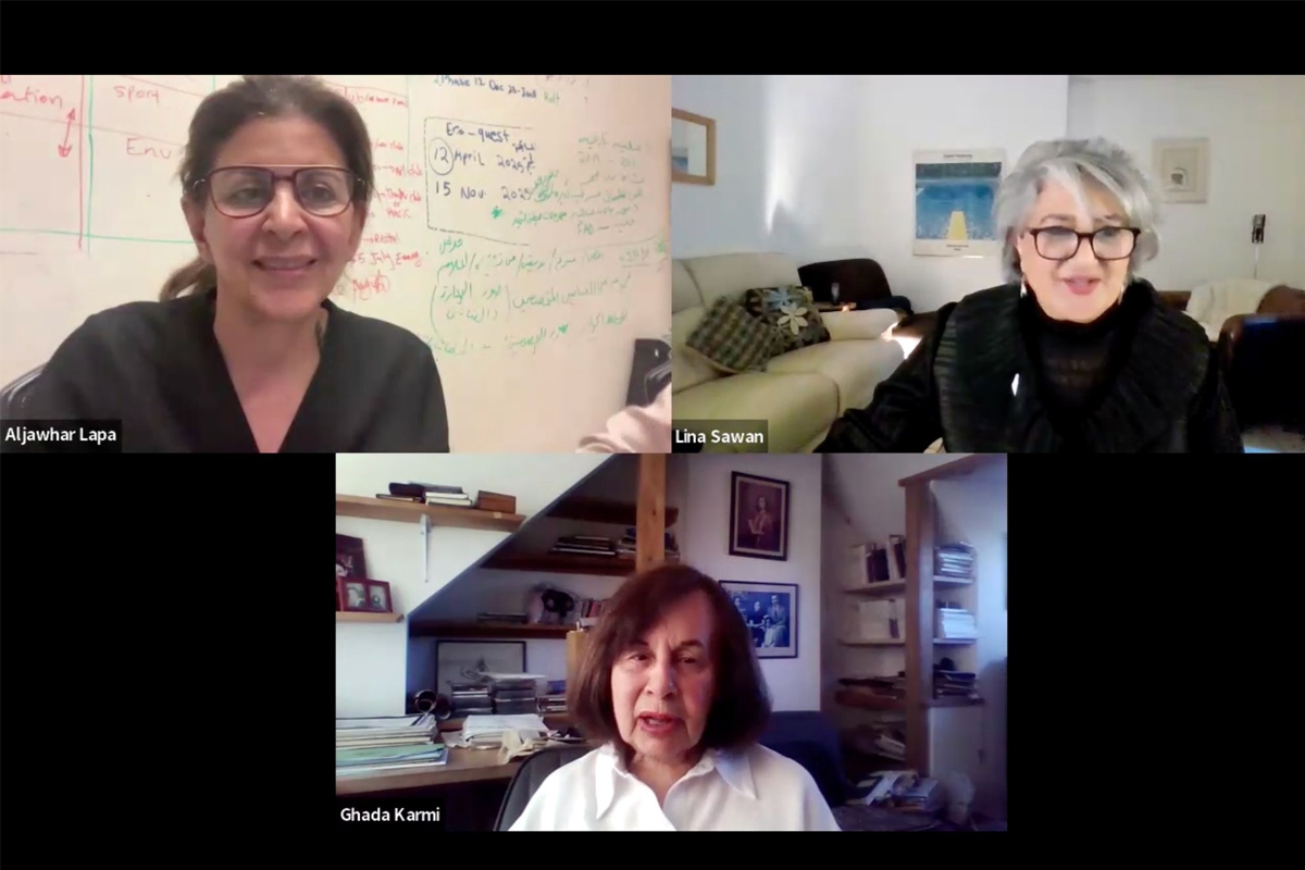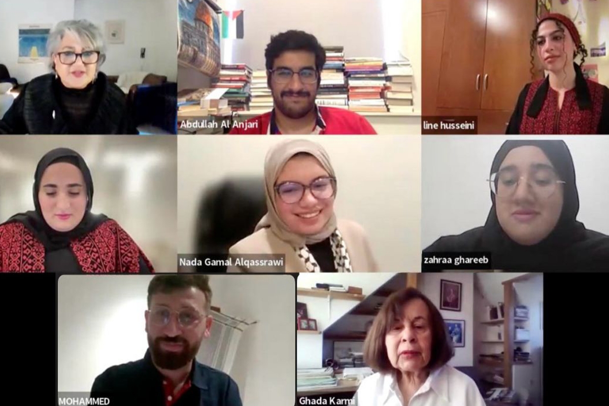 واستهلت الإعلامية لينا صوان الحلقة التي أقيمت عبر برنامج زووم بتقديم الدكتورة غادة الكرمي، الطبيبة والأكاديمية والكاتبة التي ولدت في القدس بفلسطين، واضطرت مع عائلتها للهجرة إلى بريطانيا بعد نكبة 1948، ودرست الطب وتخصصت في قضايا صحة المهاجرين، قبل أن تنتقل للمجال الأكاديمي والبحثي في تاريخ الطب العربي والدراسات الفلسطينية، وشغلت مناصب بحثية هامة في جامعات بريطانية مرموقة، مثل ليدز وإكستر، حيث تعمل حالياً كباحثة في معهد الدراسات العربية والإسلامية، كما ساهمت بمقالات وتحليلات في كبريات وسائل الإعلام والصحف العالمية.