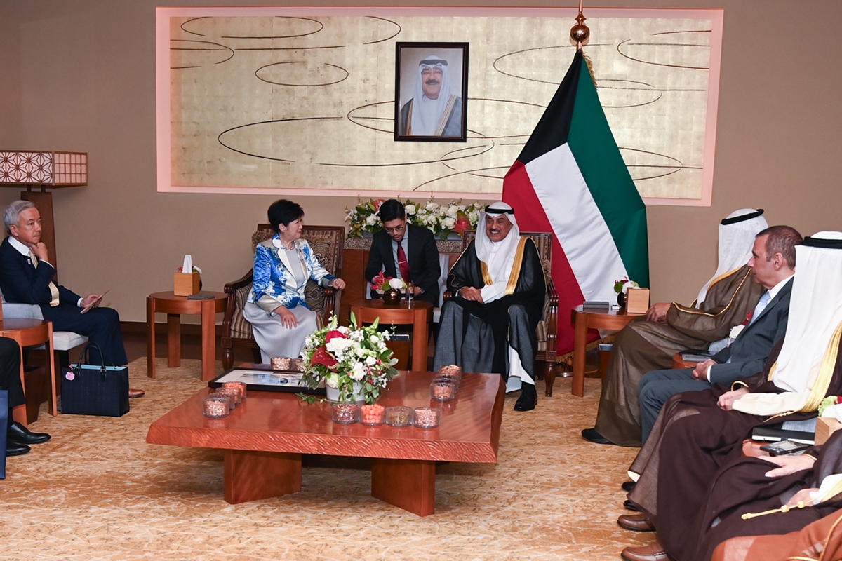 كما استقبل سموه رئيس مجلس إدارة مركز التعاون الياباني للشرق الأوسط ورئيس مجلس إدارة شركة ميتسوبيشي للصناعات الثقيلة شونيتشي مياناجا وعضو مجلس النواب الياباني ورئيس جمعية الصداقة البرلمانية اليابانية الكويتية موري إيسوكي وحاكم طوكيو كويكي يوريكو وذلك في مقر إقامة سموه بالعاصمة اليابانية طوكيو.